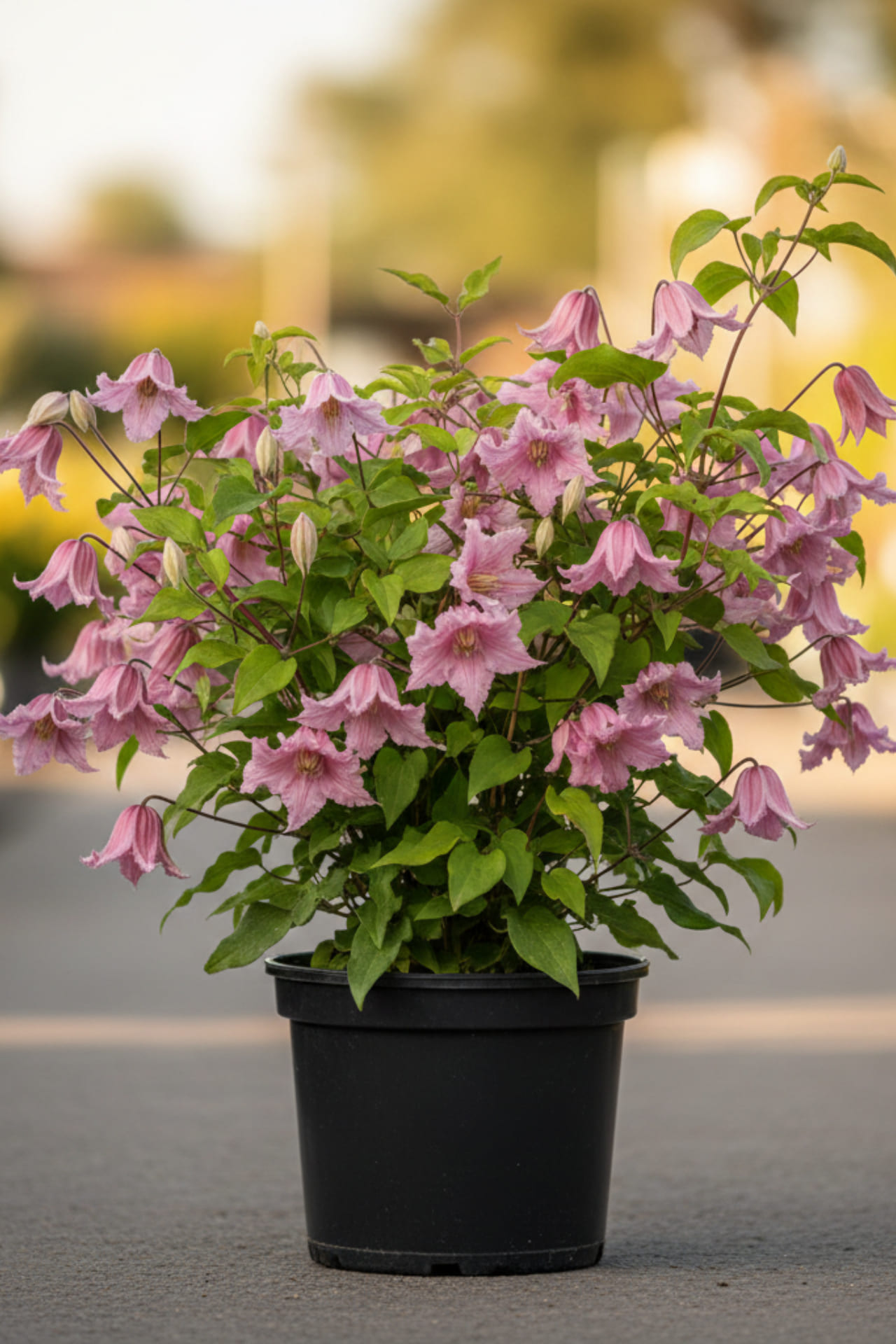 Удивительно долго цветущий, необыкновенной красоты сорт, цветки в виде колокольчика свисающие вниз, диаметром 2-3 см, из 4. светло-розовых лепестков, со светлым краем и очень сильно вывернутым наружу. Лепестки снаружи легко гофрированы а внутри розово-кремовые с розовыми прожилками. Тычинки состоят из жёлтых пыльников на белых нитках. Цветёт очень долго, на молодых побегах, с половины июня до конца октября. Листья состоят из 3.– 5. эллипсной формы или овальных листочков. Молодые побеги светло - зелёные, зрелые - коричневые. Достигает высоты 2 м. Цепляется листовыми хвостиками.