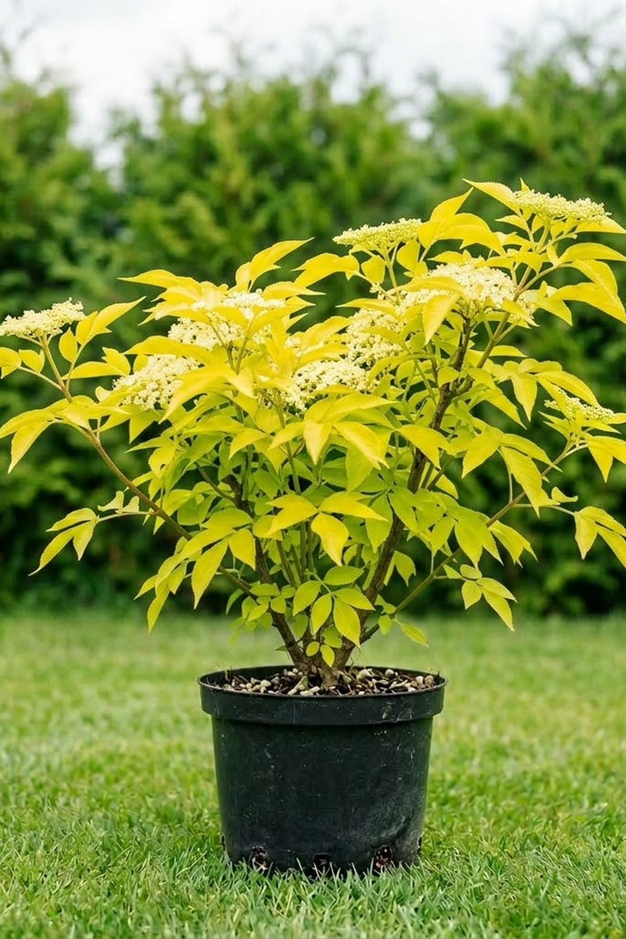 - Цветки желтовато-белые, пахучие, в густых зонтиковидных соцветиях диаметром до 20 см, конец июня - июль, продолжительность цветения 25-35 дней; плоды - округлые ягоды, черные; съедобны только спелые ягоды в переработанном виде