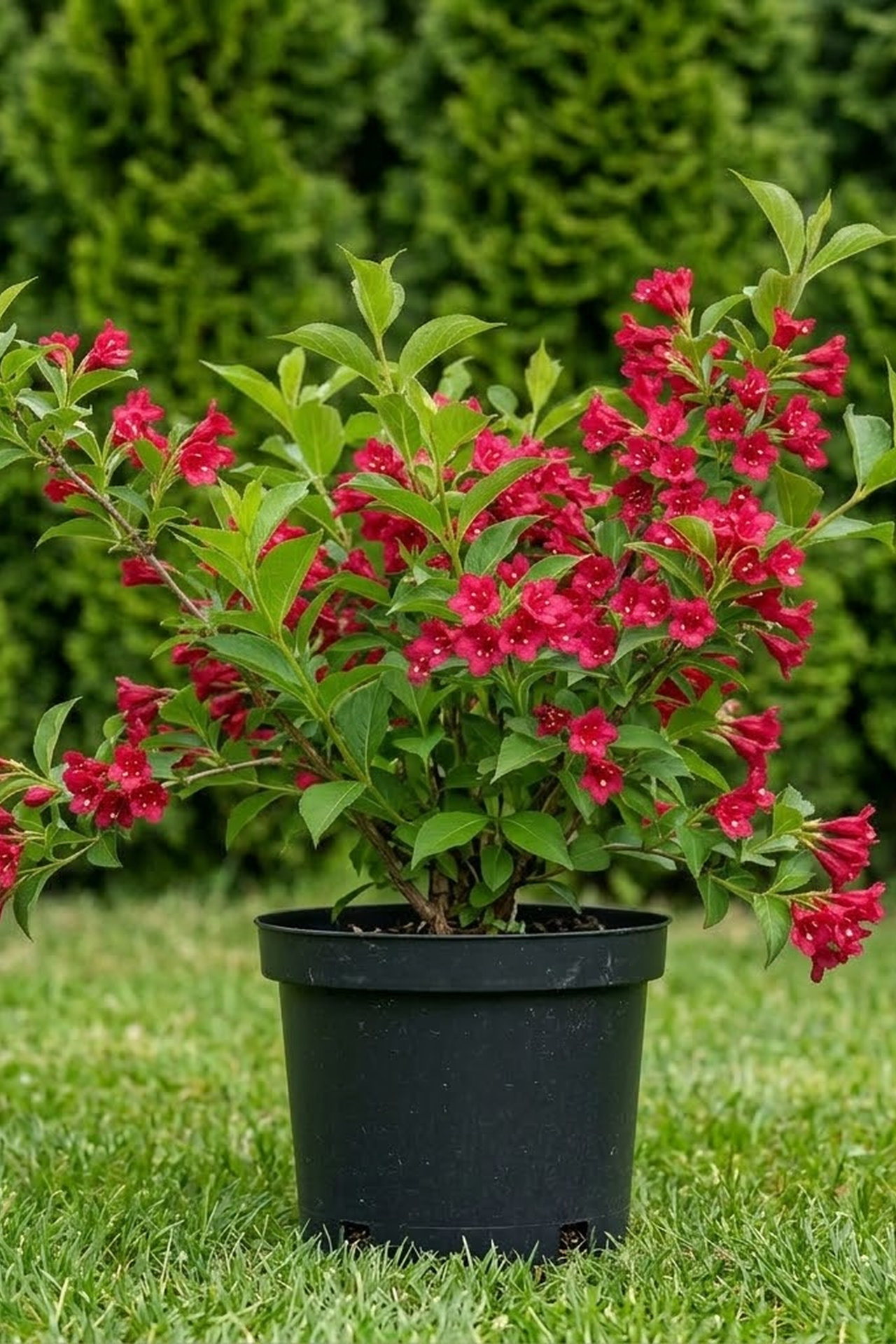 - Ярко-красные, не выгорают, многочисленные, колокольчиковидные. Цветение в мае - июне, повторное цветение в августе - сентябре