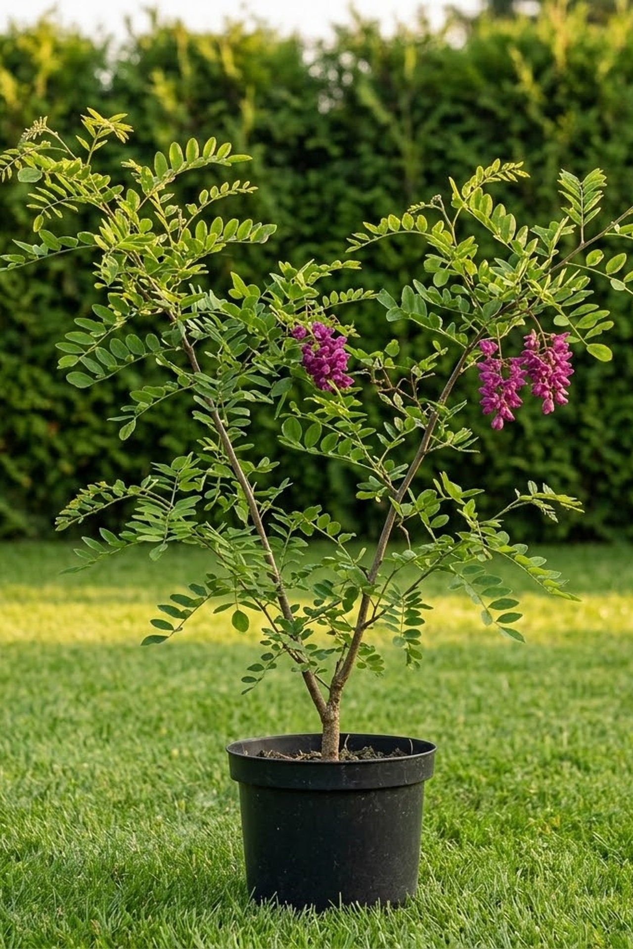 - Цветы очень декоративные, пурпурно-красные, собраны в свисающие кисти, длиной 15 см, с нежным ароматом, VI.