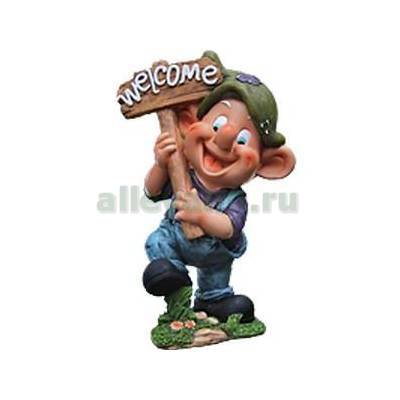 Фигура садовая ЭЛЬФ С ГОРИЗОНТАЛЬНОЙ ТАБЛИЧКОЙ WELCOME в Ижевске