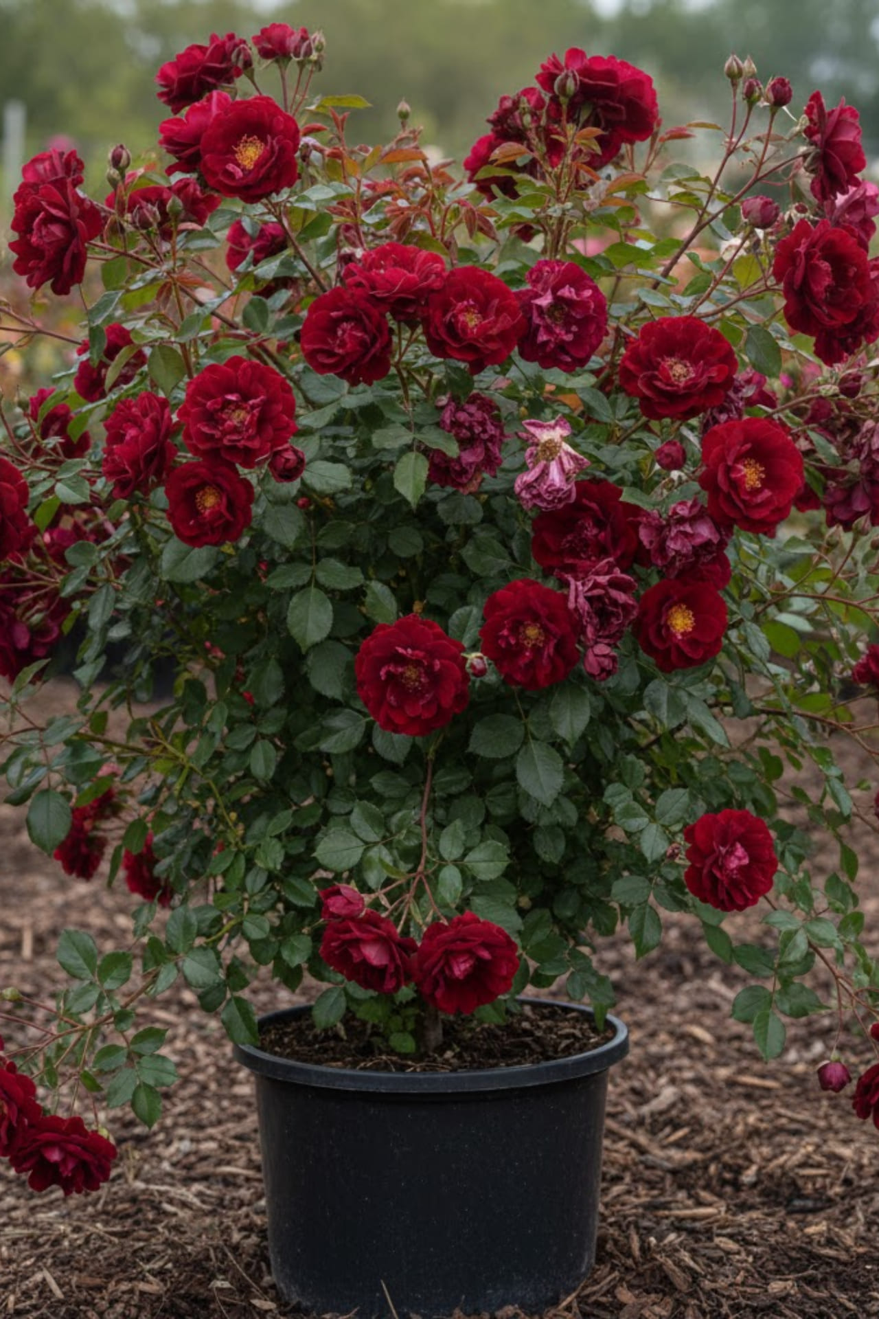 - цветки 6-8 см махровый,75 лепестков,аромат легкий -устойчивый(темно красный цвет)