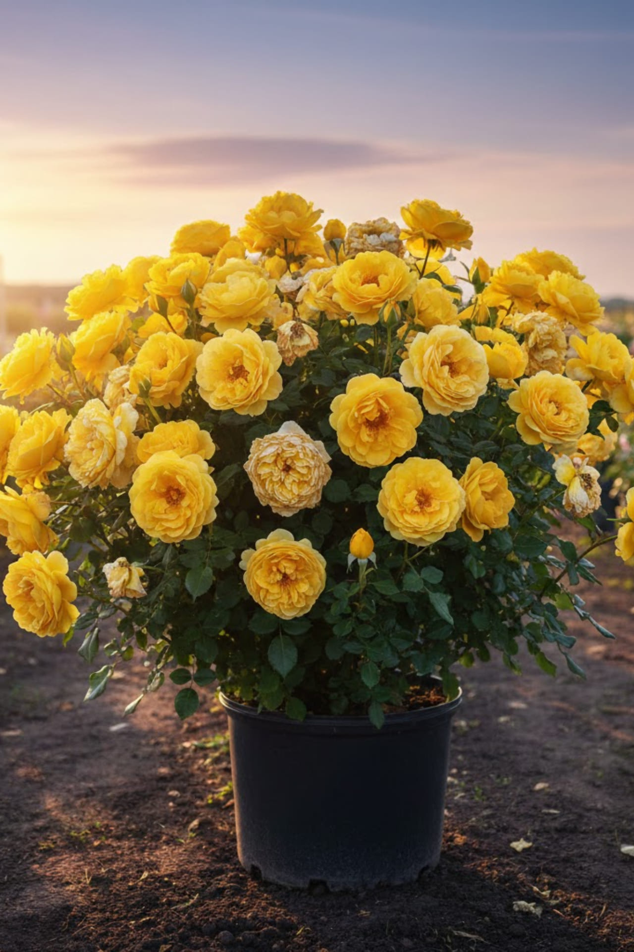 - Чистого золотистого цвета, постепенно выгорают до лимонно-желтых или кремовых по краям. Они чашевидные, густомахровые, появляются по одному или в кистях до 7 шт