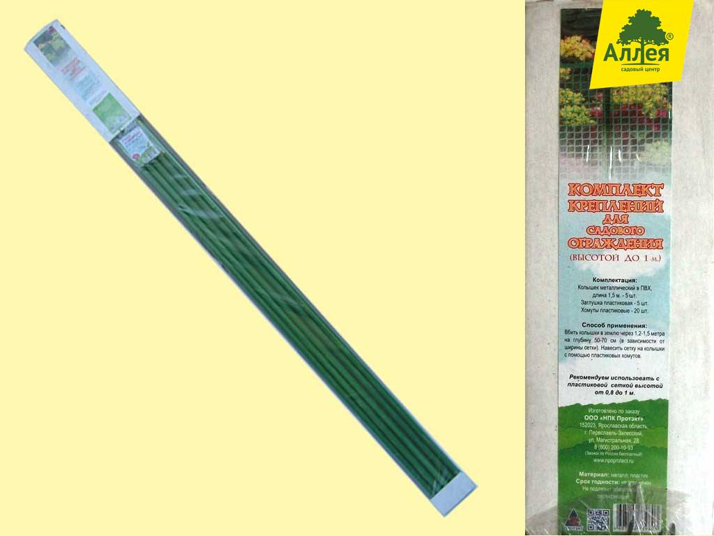 - пластиковые хомуты и металлические стойки в ПВХ-оболочке в количестве, достаточном для установки ограждения длиной 10 метров. Стойки оснащены пластиковыми наконечниками, которые защищают металлический стержень от проникновения влаги и облегчают их установку в грунт. Пластиковый хомут позволяет быстро зафиксировать сетку на стойке. При необходимости крепления сетки большей протяженности достаточно приобрести больше комплектов. Удобное и практичное решение для зонирования придомового участка, ограждения палисадника, благоустройства территории детского сада
